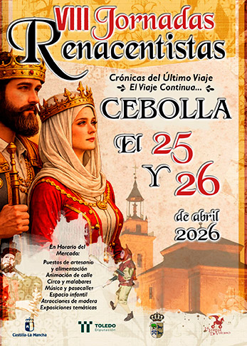 Turismo – Cebolla 2024 Cebolla celebra la sexta edición de las «Jornadas Renacentistas». Las Jornadas Renacentistas Conmemoran la estancia de los Reyes Católicos en el año 1502 en Cebolla. La